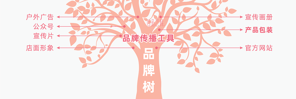 從品牌樹的結(jié)構(gòu)中,我們可以看到產(chǎn)品包裝只屬于其中的枝干部分,想讓品牌枝干得到更好的成長,從而連接、生長出茂盛枝葉,帶動品牌這棵大樹成長。
