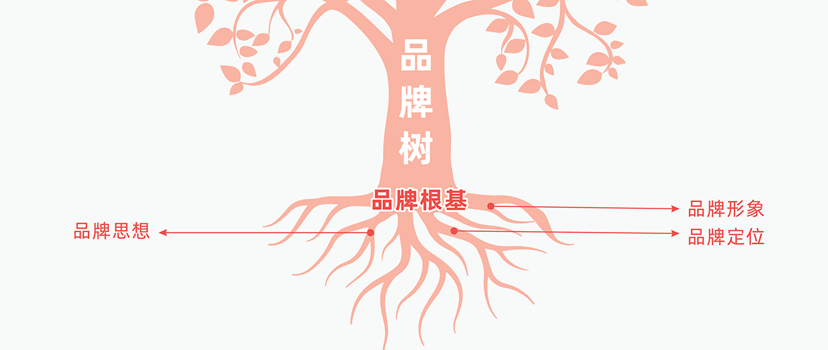 品牌樹的根基,主要包含“品牌定位”、“品牌思想”、“品牌形象”三大方面。
