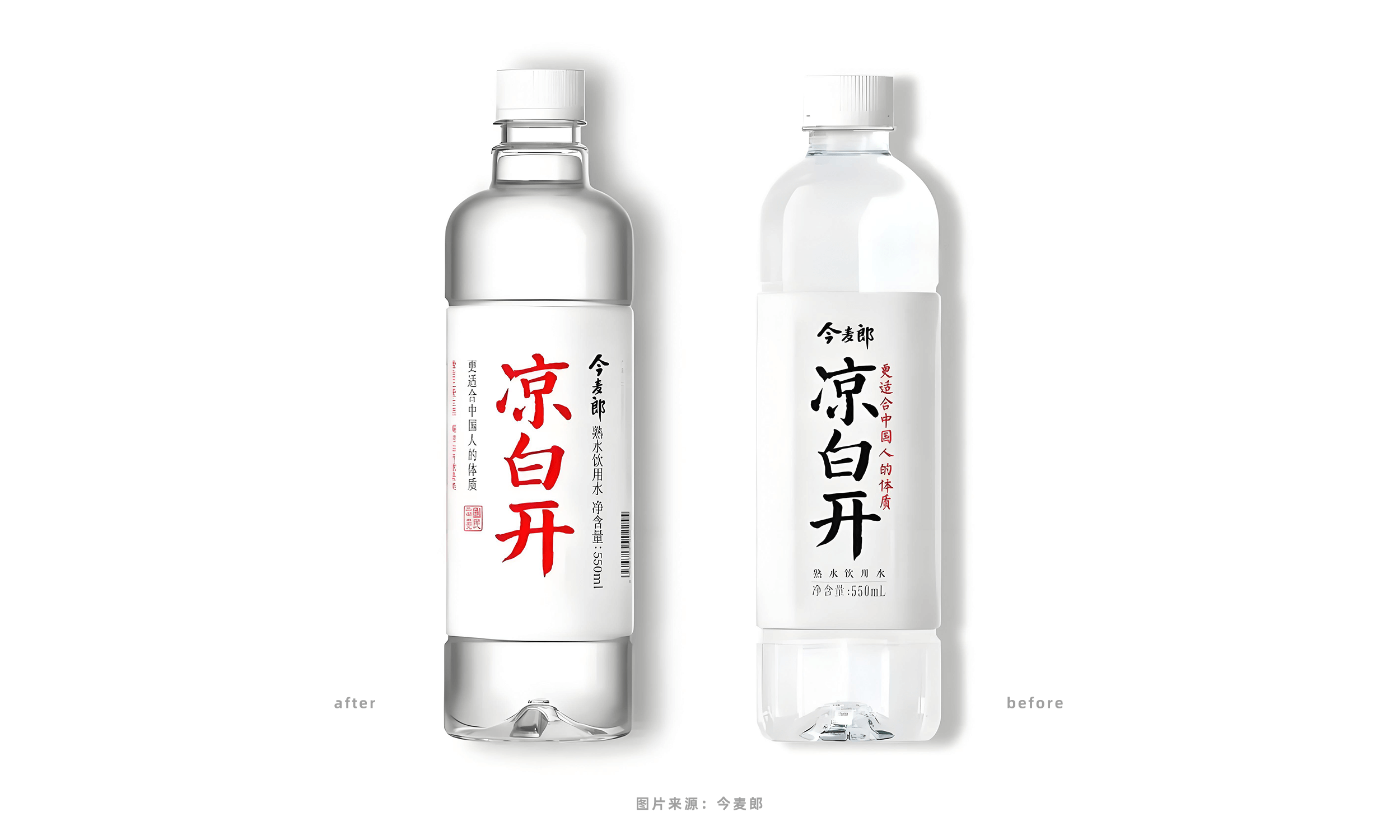 如:今麥郎涼白開的包裝升級。