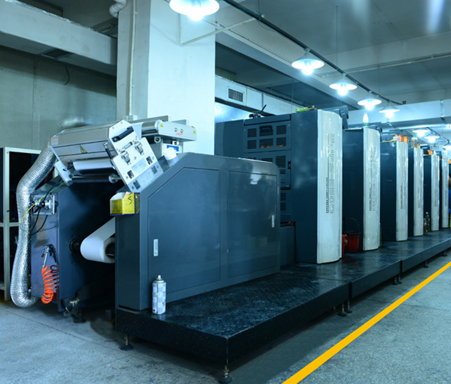 公司設(shè)計(jì)部現(xiàn)擁有十幾部PC蘋果電腦可為客戶提供創(chuàng)意平面設(shè)計(jì)及制作服務(wù).印刷部現(xiàn)擁有全新德國(guó)海德堡CP2000對(duì)開四色印刷機(jī)、日本羅蘭四開四色印刷機(jī)、德國(guó)海德堡GT052-4四開雙色印刷機(jī)、海德堡GTO6開帶打號(hào)單色膠印機(jī)、臺(tái)灣大升商標(biāo)印刷機(jī)及印后包裝的斯塔爾折頁(yè)機(jī),高速阿斯塔鎖線機(jī),過膠機(jī),啤機(jī),燙金機(jī),并具備后期精致裝訂能力,提供印后加工手工服務(wù)。后道服務(wù)包括過燙金啤盒、裱坑、粘盒、折頁(yè)、精美手工禮品盒等全套服務(wù)。