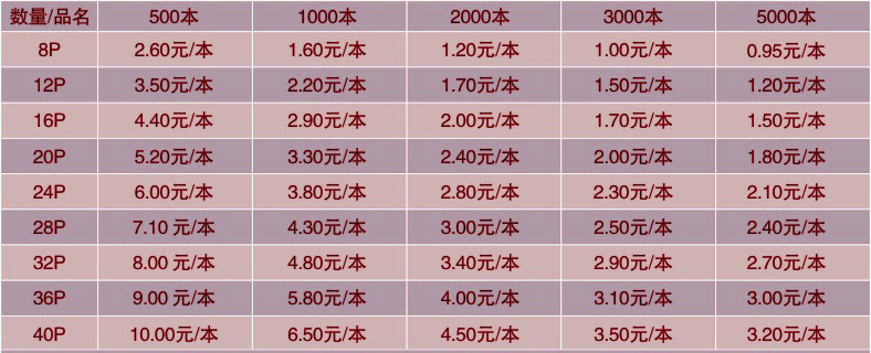 以上是畫冊設(shè)計的價格,另附上一份畫冊印刷報價表: