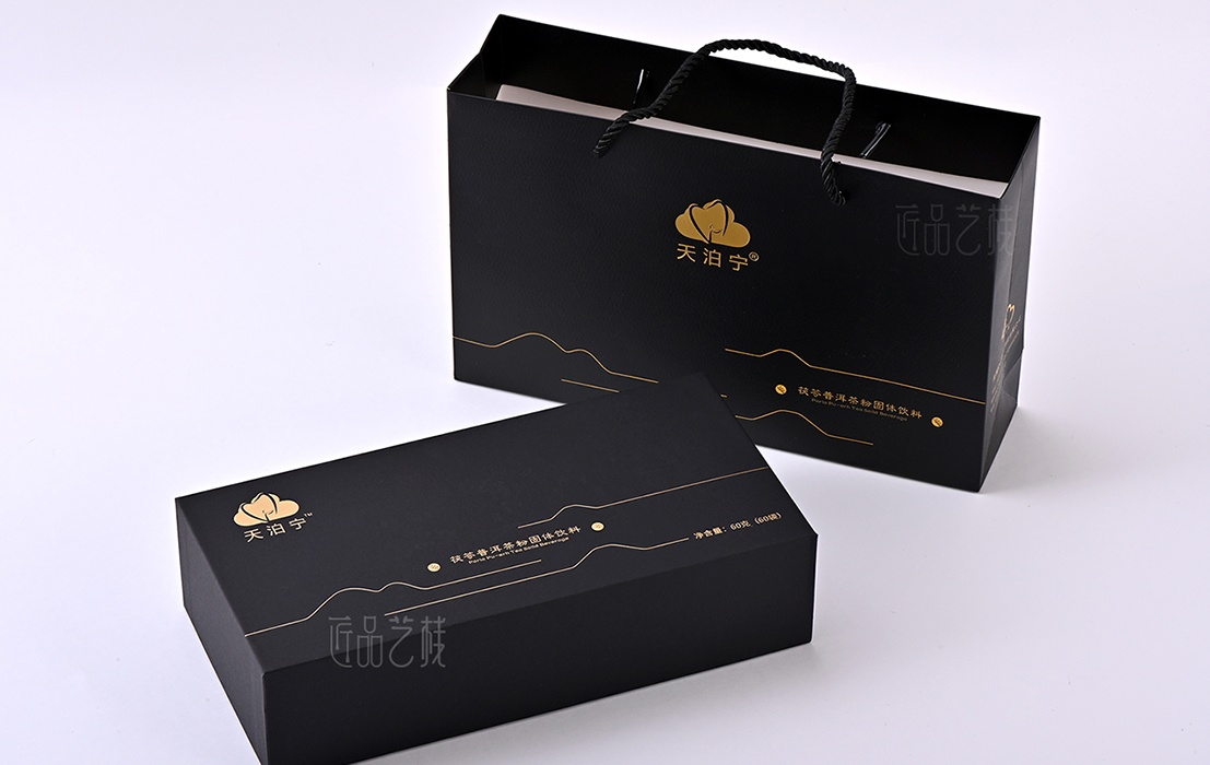 匠品藝棧以精湛的包裝定制規(guī)劃方式,將普洱茶的深邃黑色作為該產(chǎn)品的靈魂色彩,
